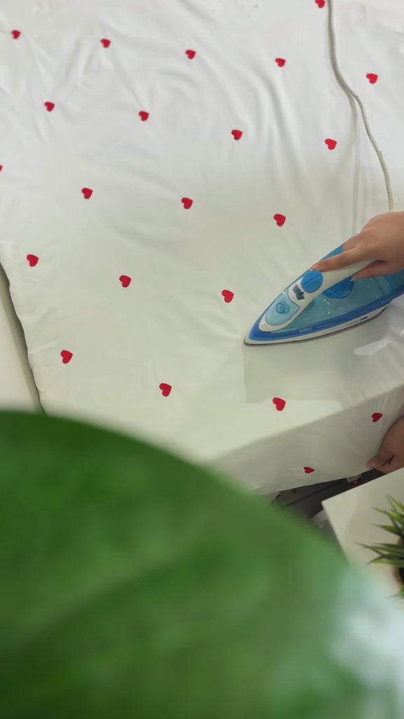 Bring a touch of romance to your bedroom with this elegant white bedsheet, delicately accented with small red heart details. Crafted from soft, smooth fabric, it offers exceptional comfort while adding a charming and cozy aesthetic to your space. The clean white base enhances brightness, while the subtle heart pattern creates a warm, intimate feel.